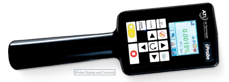 El iProbe actúa como una extensión del instrumento base a través de una interfaz de usuario casi idéntica. Todos los iconos de estado y selección de la unidad base están representados en su pantalla. Con solo presionar un botón, se puede seleccionar de forma remota la entrada de aire al instrumento (upstream, downstrream, clear) mediante un sistema de válvulas controlado electrónicamente.