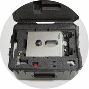 Maleta de transporte con ruedas, resistente al agua. Acomoda un generador 4B, 4B-Lite o 6D, con espacio para el adaptador a manguera opcional.